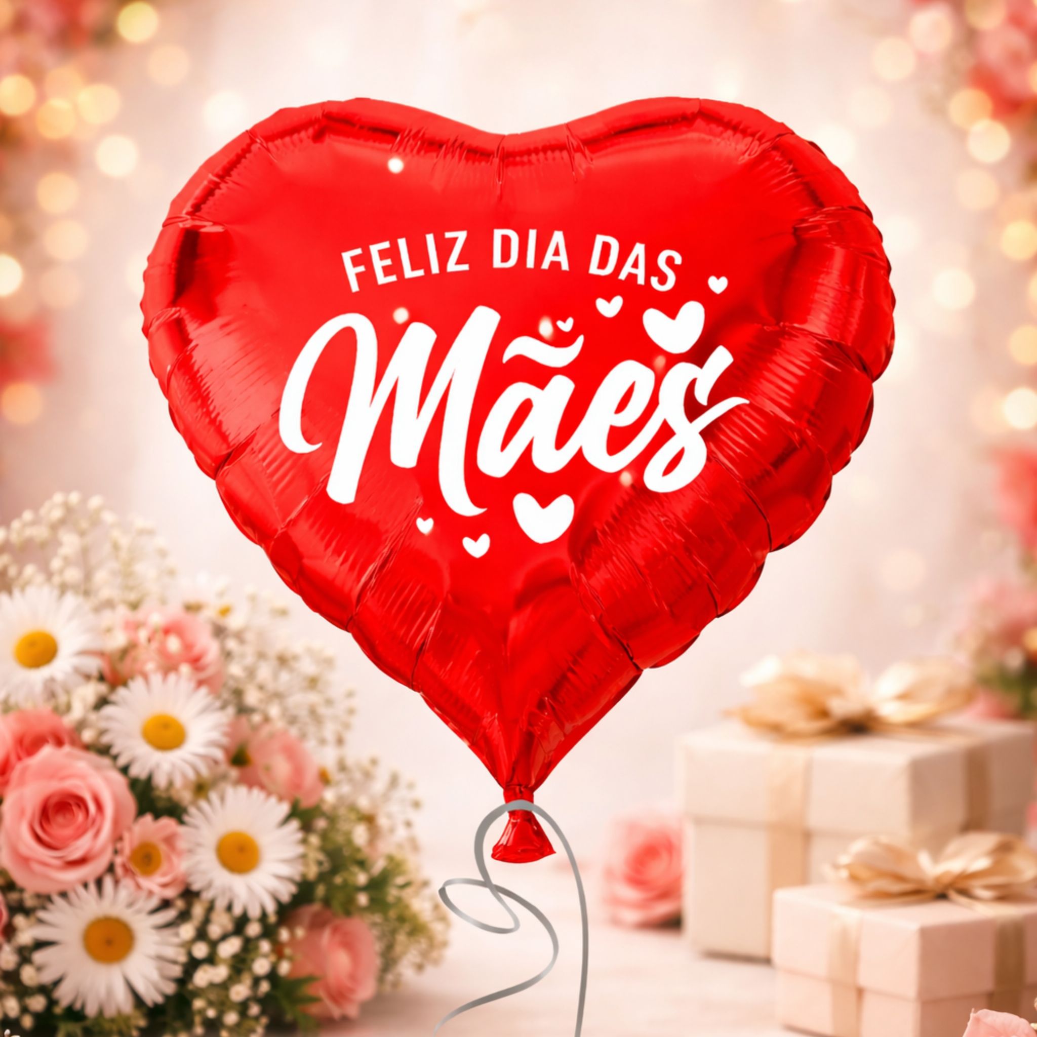 Com formato de coração e acabamento metalizado brilhante, esse balão de 45 cm traz a mensagem “Feliz Dia das Mães”, perfeito para presentear, decorar ou complementar uma surpresa cheia de carinho. 🌷✨