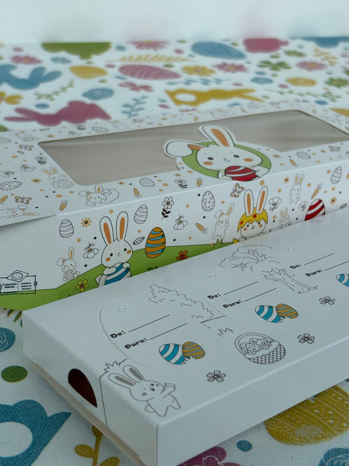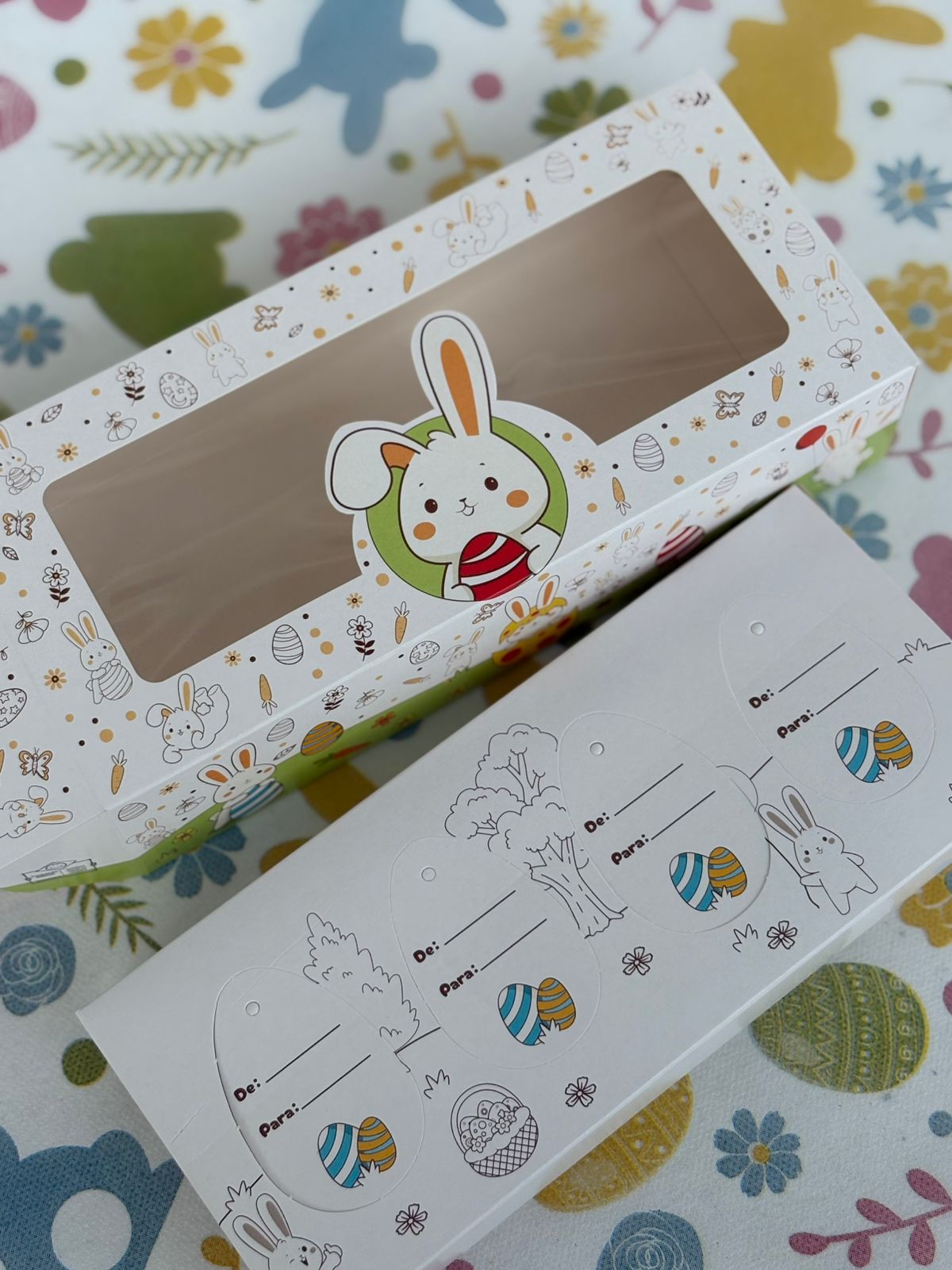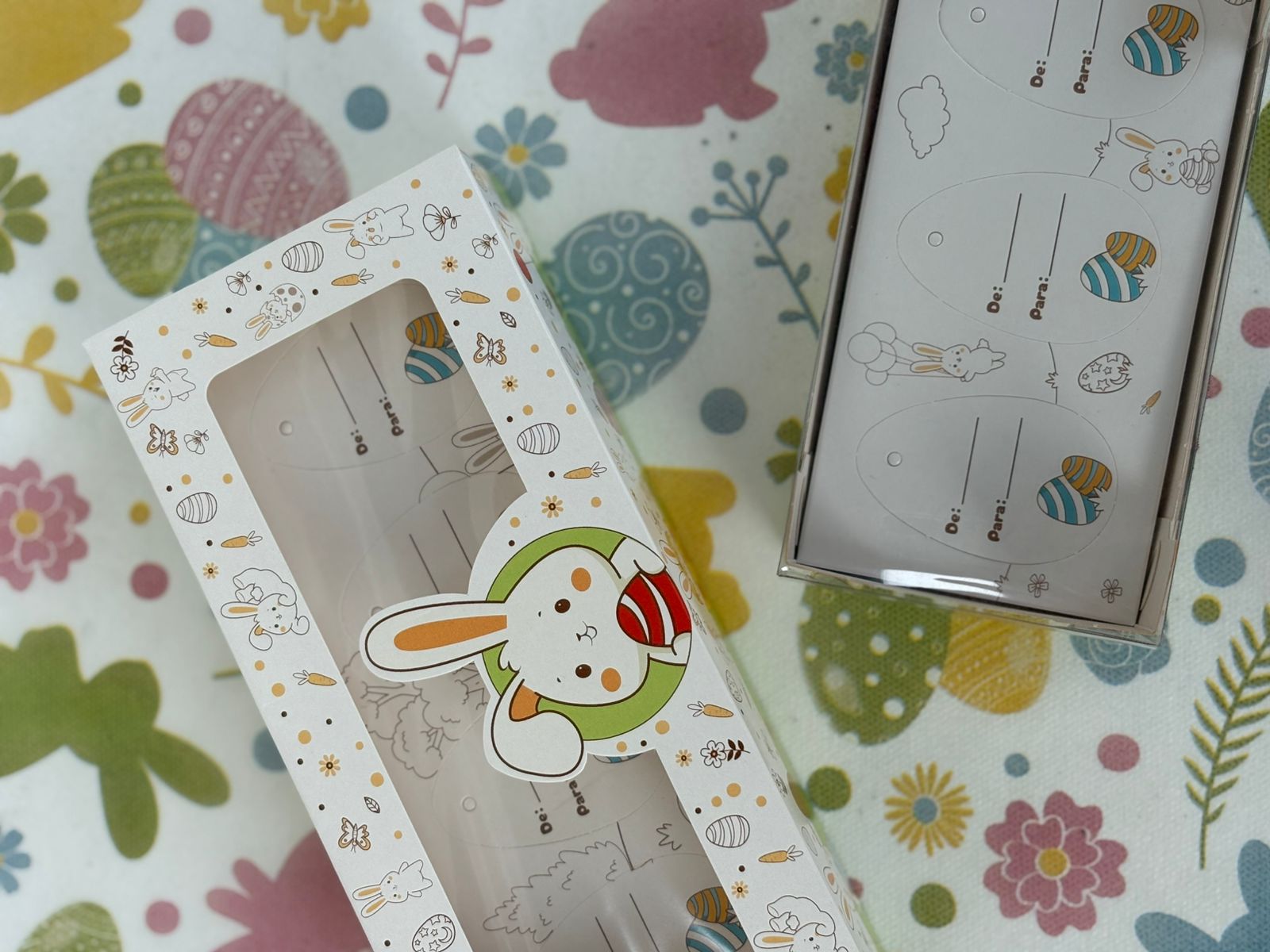 Perfeita para mini ovos, coelhos de chocolate, mini sabonetes, velas ou produtos artesanais. Complemente com canetinhas, giz e lápis de cor.