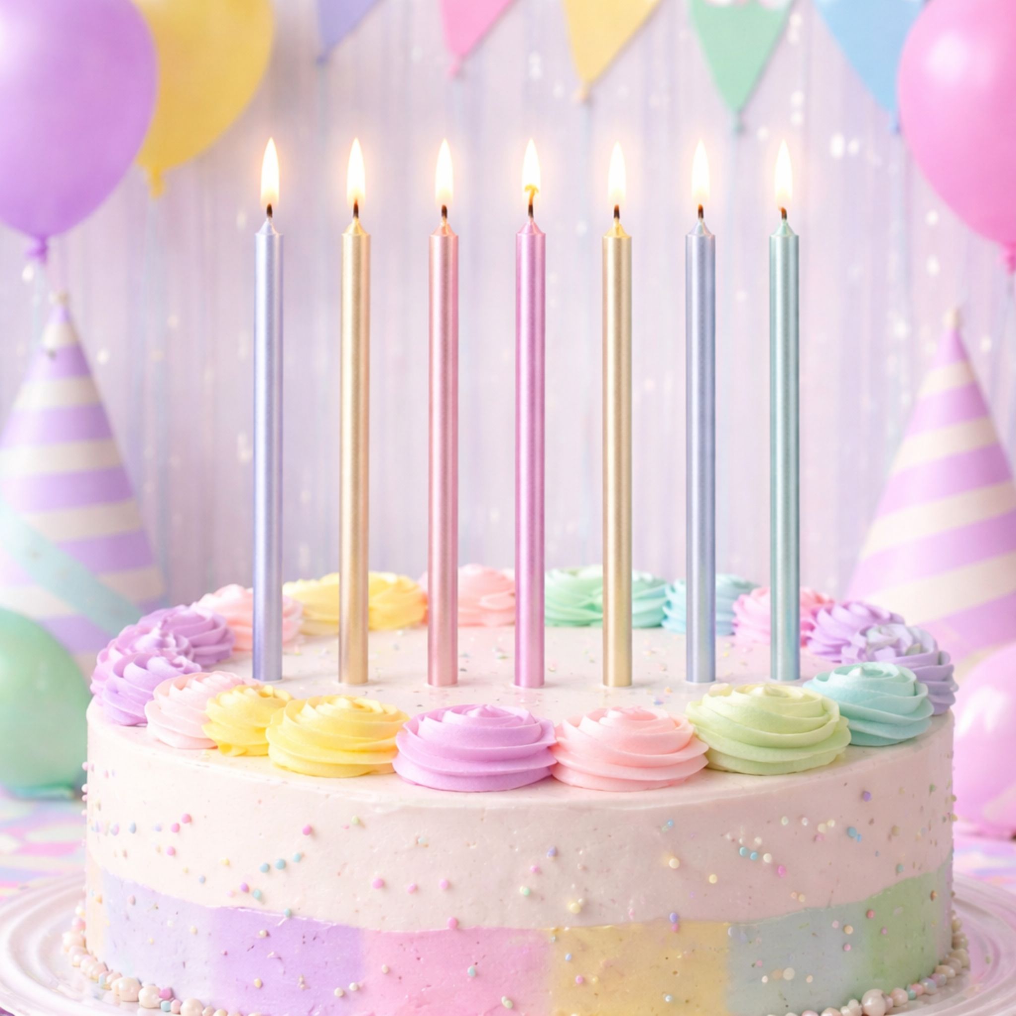 Moderna, delicada e cheia de charme, a vela palito metalizada colorida é perfeita para deixar seu bolo ainda mais bonito e alegre! 🎂✨
